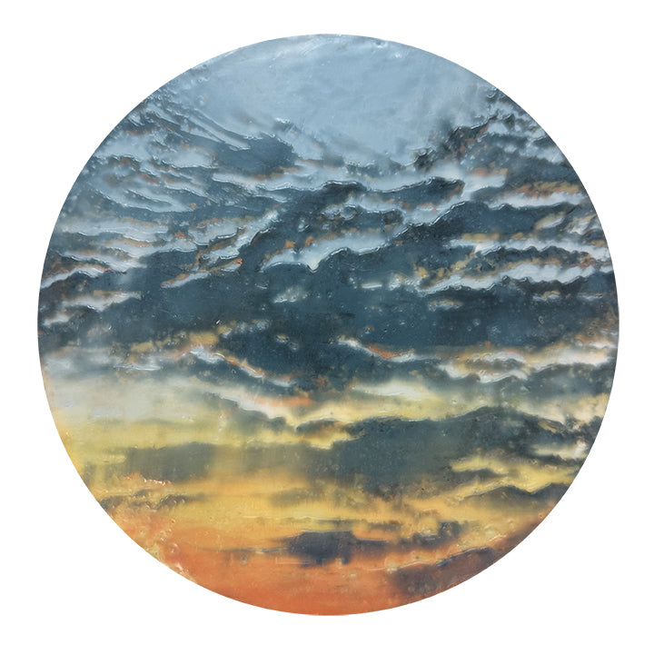 After completion of an encaustic painting there is a curing process of a few months. During this time moisture will work its way to the surface and cause a slight haze (this is called bloom). When the sheen dulls or looks dusty, it can be buffed (gently, firmly but not overly vigorous) to a high gloss using a soft lint-free cloth (similar to polishing or dusting furniture). The sheen dulls over time and can be brought back by repeating the process. Although the surface is completely dry, encaustic paintings can be easily scratched, gouged, or chipped if handled roughly. No fingernails please! Protect all encaustic from extreme heat (above 140 F) and freezing temperatures.